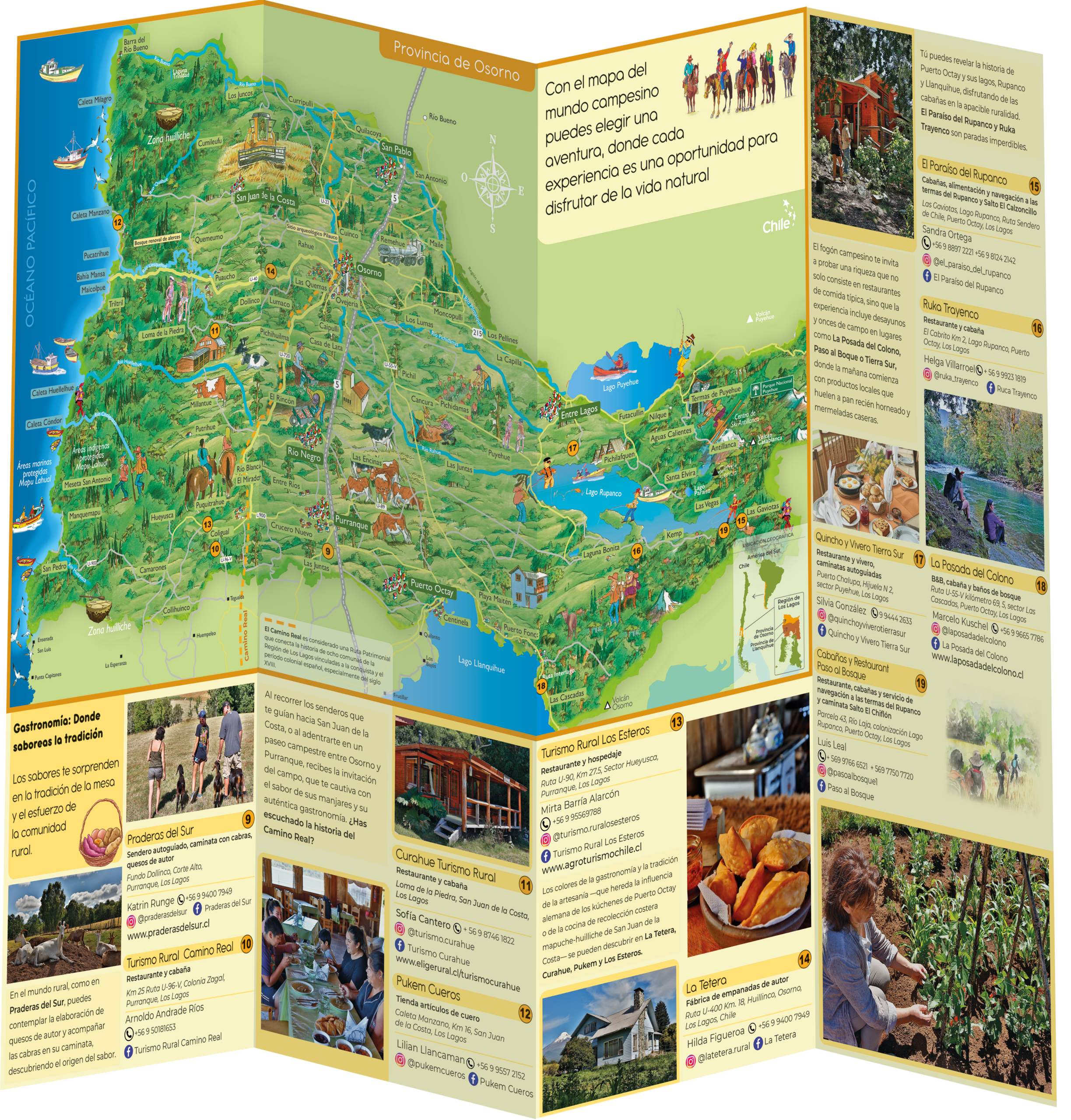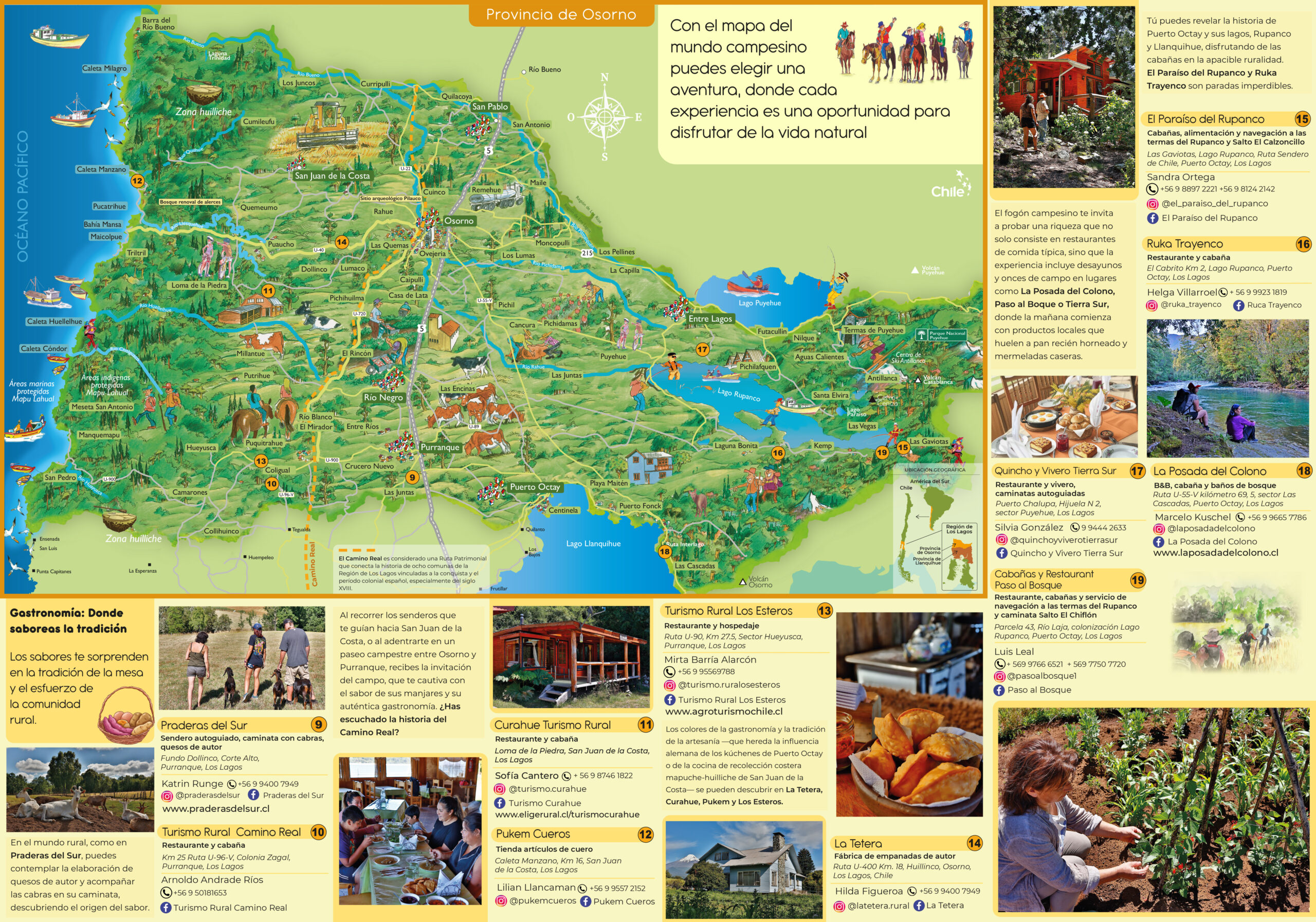 Este proyecto, desarrollado junto a INDAP, tuvo como objetivo principal poner en valor el turismo rural de las provincias de Osorno y Llanquihue, visibilizando a emprendedores formalizados que, desde sus territorios, ofrecen experiencias auténticas vinculadas a la cultura, la naturaleza y las tradiciones del sur de Chile.